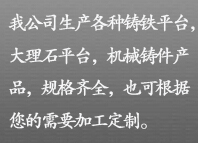 全意鑄鐵平臺(tái)平板廠家專注生產(chǎn)T型槽鑄鐵平臺(tái),大理石氣浮實(shí)驗(yàn)石平臺(tái),han接鑄鐵平臺(tái),裝配鑄鐵平臺(tái),檢測(cè)測(cè)量大理石平臺(tái),試驗(yàn)鑄鐵平臺(tái),測(cè)量大理石平板,T型槽平臺(tái),電機(jī)試驗(yàn)平臺(tái),三坐標(biāo)測(cè)量平臺(tái)等鑄鐵平板來圖加工定做業(yè)務(wù),以合理的價(jià)格,專注的技術(shù)服務(wù)于國(guó)內(nèi)外客戶,互利合作,共同發(fā)展!公司位于河北交河開發(fā)區(qū),京滬鐵路、104國(guó)道、106國(guó)道、京福高速公路橫穿而過,與我國(guó)的兩大直轄市北京、天津近在咫尺,地理位置優(yōu)越,交通非常便利。我公司本著以誠(chéng)納客”“嚴(yán)把質(zhì)量關(guān)”“價(jià)格優(yōu)惠”“用戶至上的原則,幾十年兢兢業(yè)業(yè),受到用戶的一致好評(píng)!